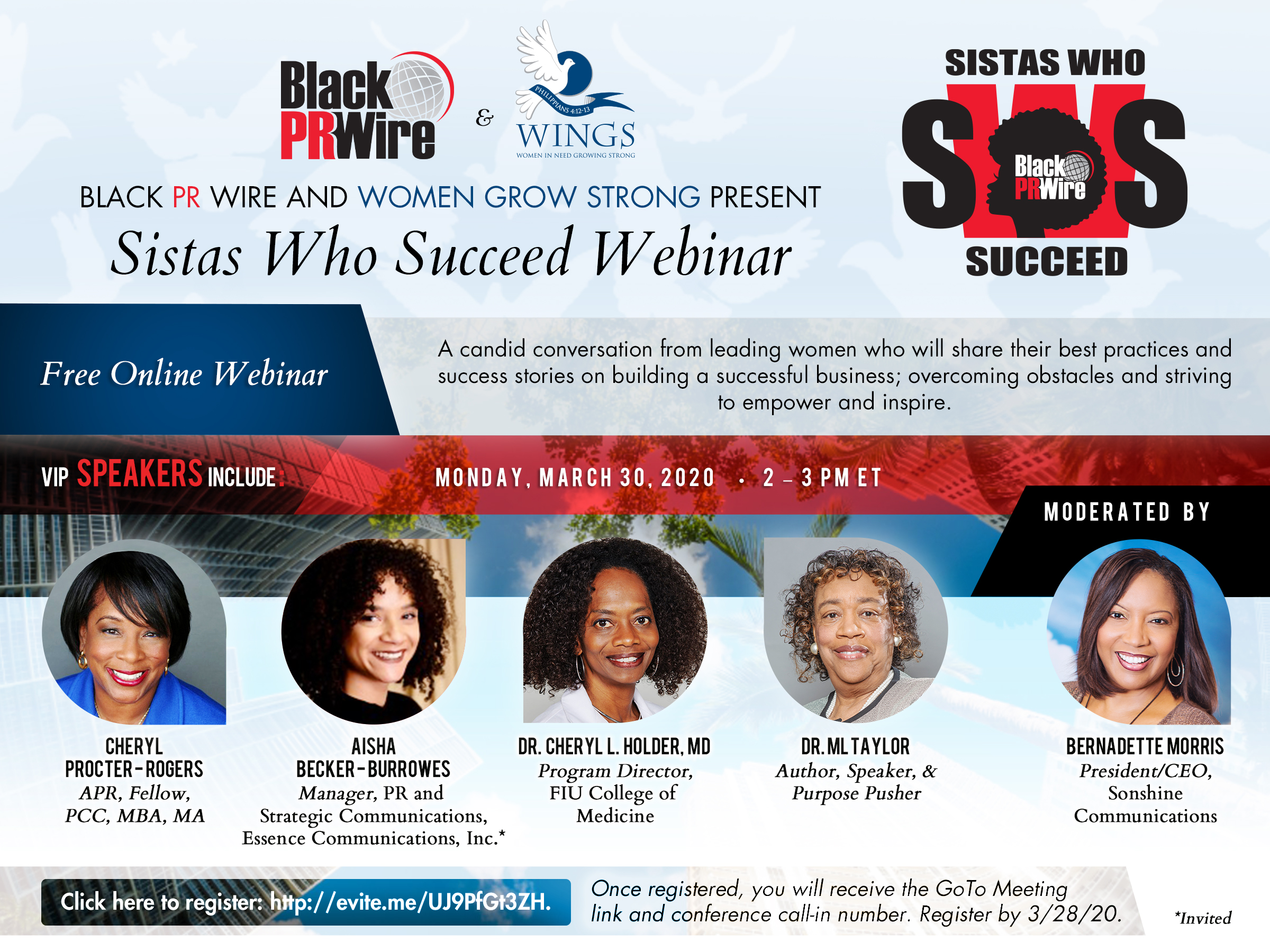 Black PR Wire and Women Grow Strong present “Sistas Who Succeed” -- A FREE Women’s History Month Webinar